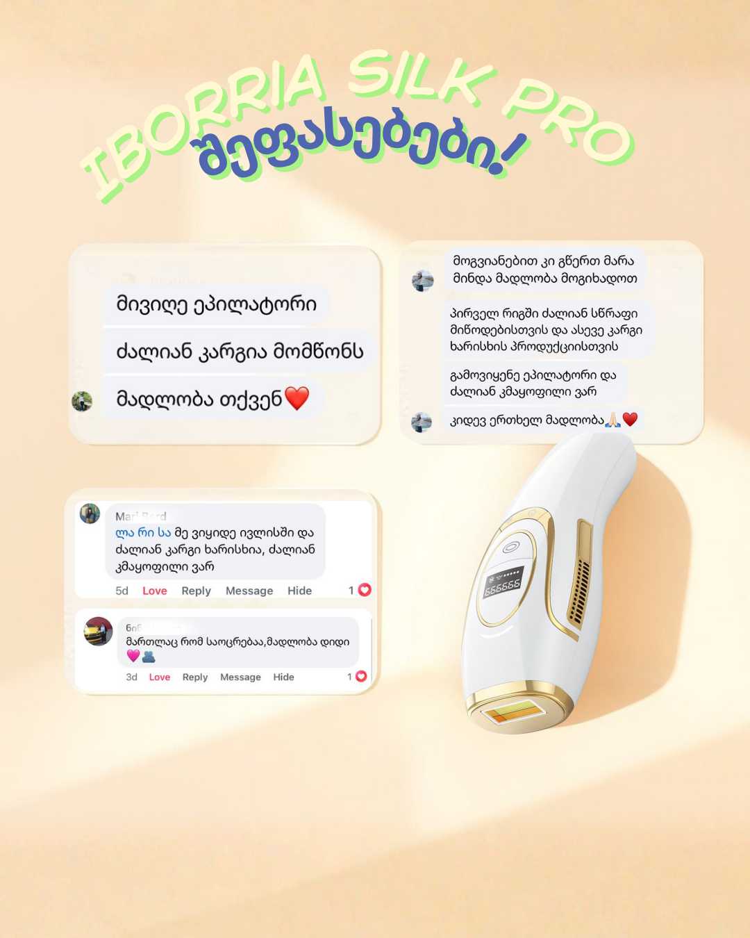რეკომენდებულია საშუალო სისქის თმის მოსაშორებლად — ფეხები, ხელები, ზურგი, მუცელი. - 🔥 მაღალი რეჟიმი (დონე 5)